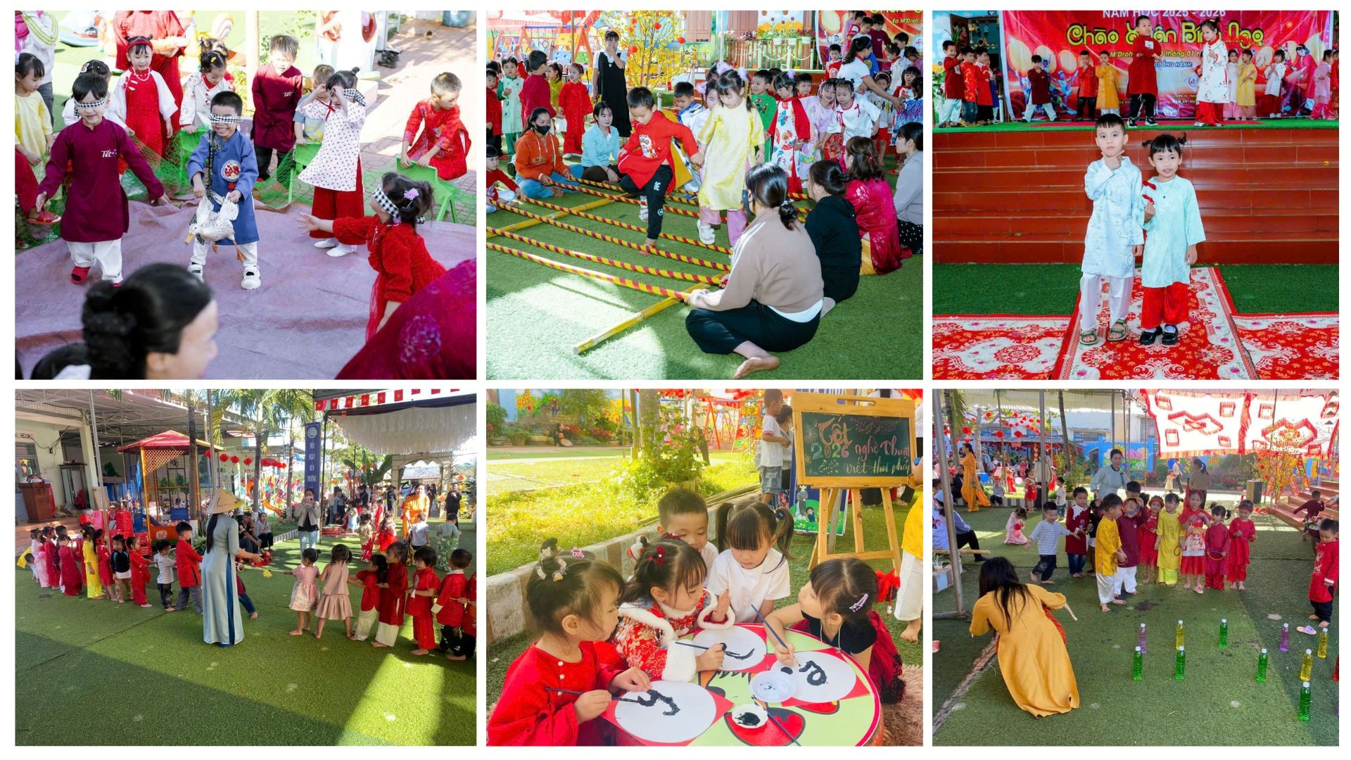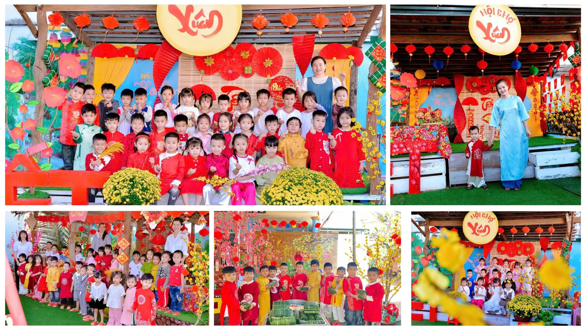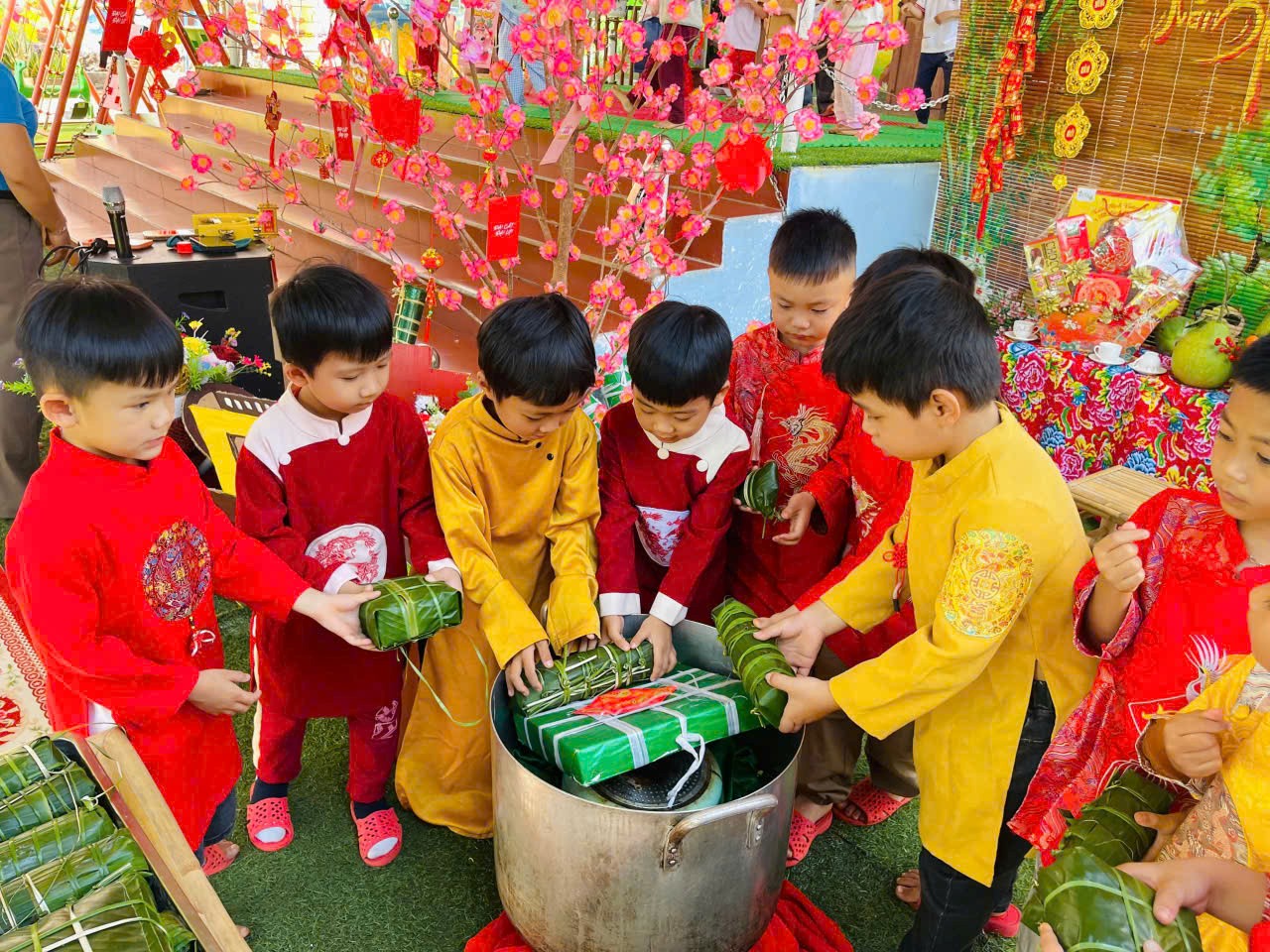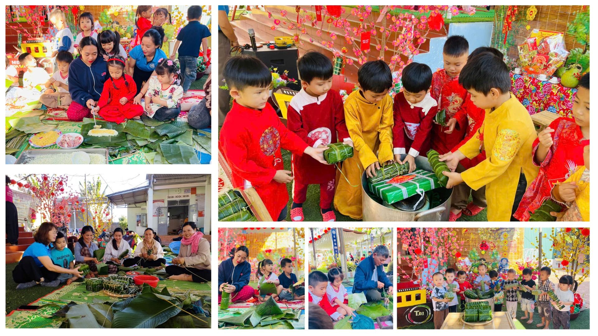 Ngoài ra, các bé còn được tham gia Tổ chức bữa cơm gia đình ngày Tết cho trẻ mầm non tại trường tạo không gian ấm áp, gần gũi, giúp trẻ hiểu về nét văn hóa truyền thống, rèn luyện kỹ năng sống và kỹ năng giao tiếp. Hoạt động này thường bao gồm việc chuẩn bị các món ăn truyền thống, trang trí không gian ngày Tết, và hướng dẫn trẻ các quy tắc ứng xử văn minh trong bữa ăn.