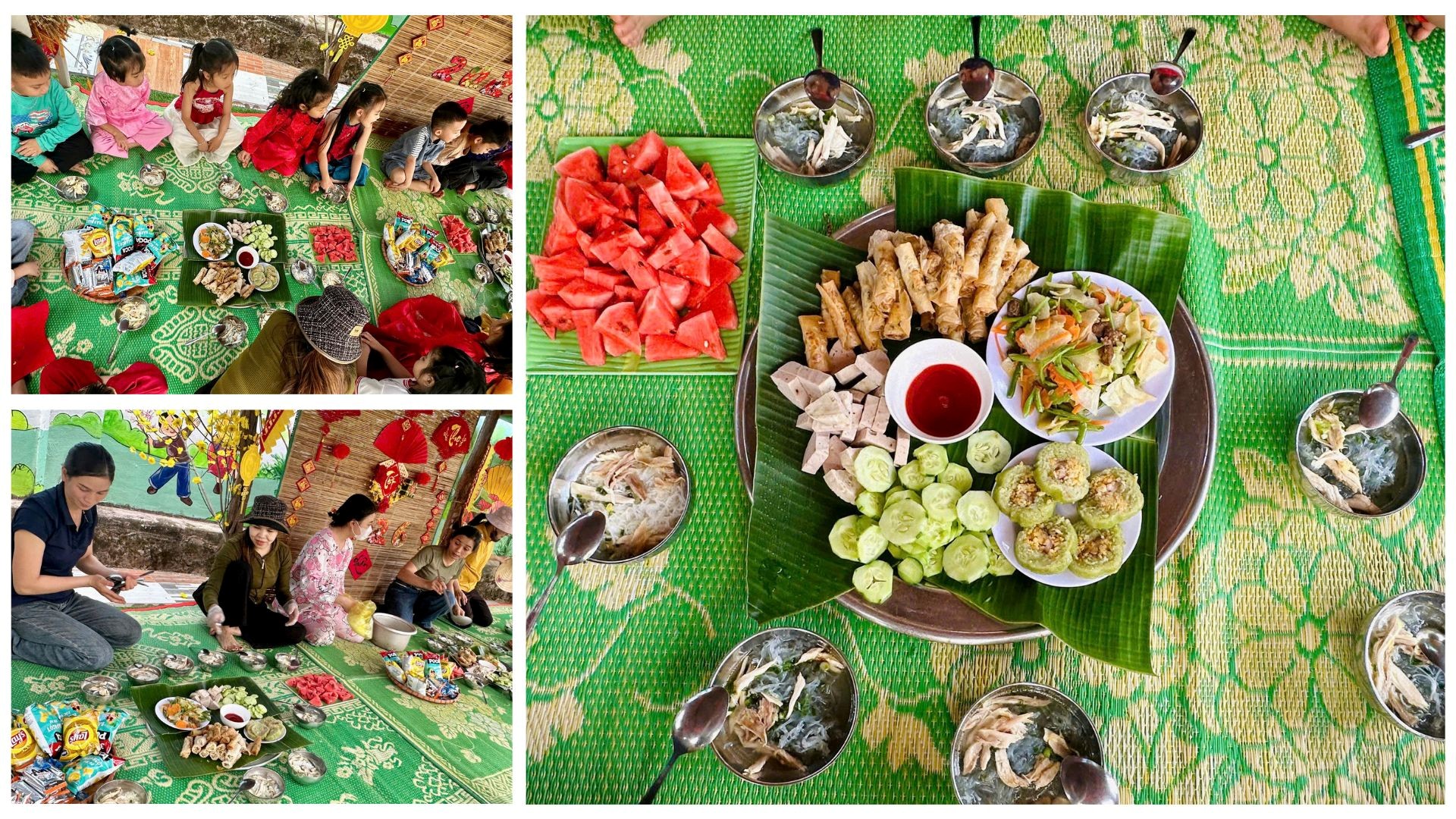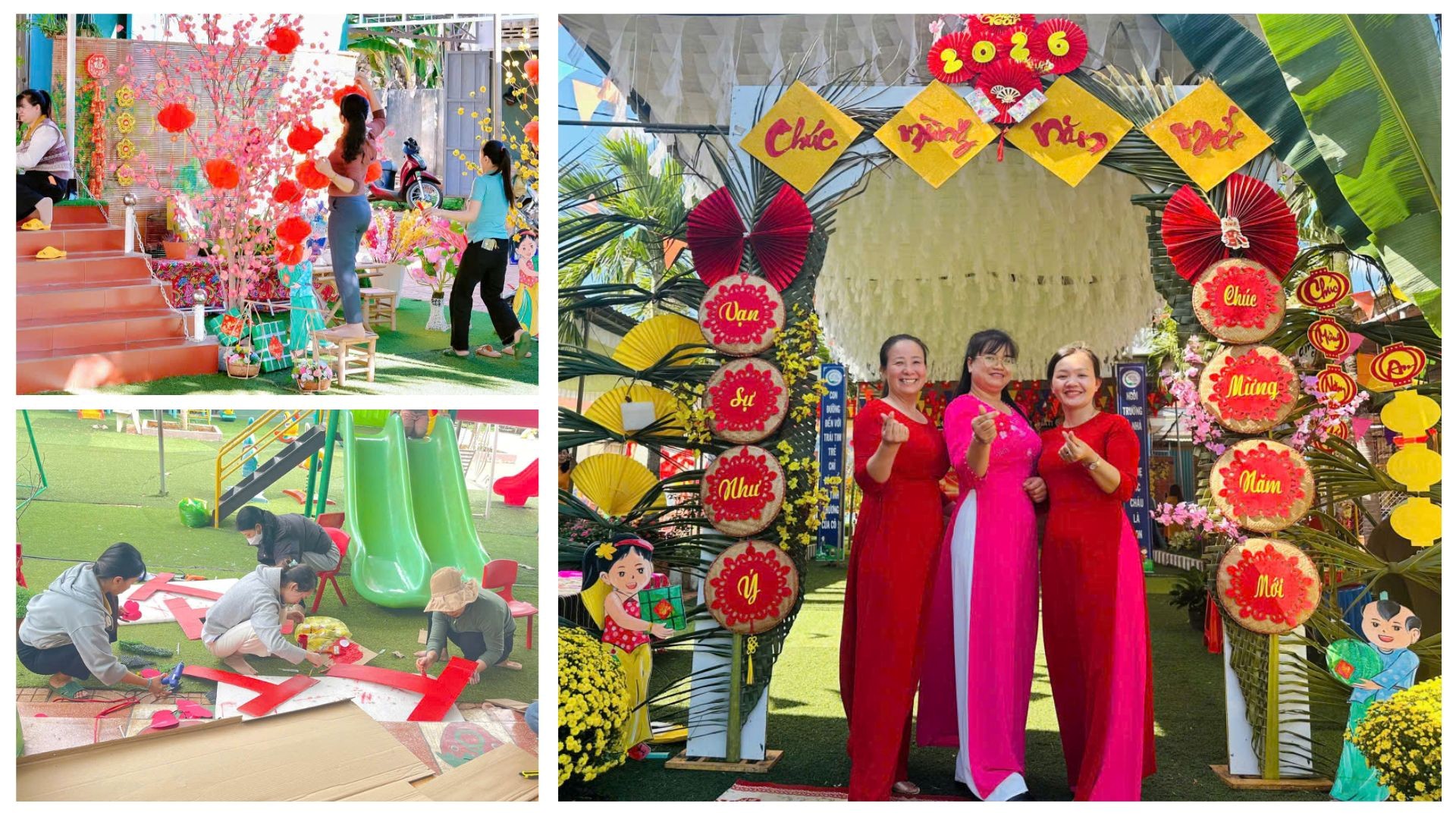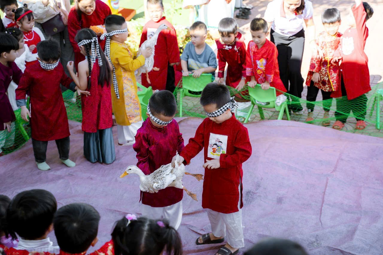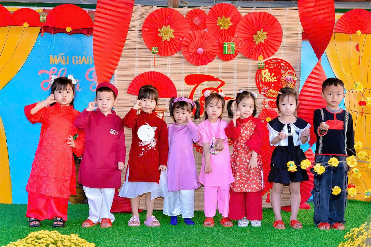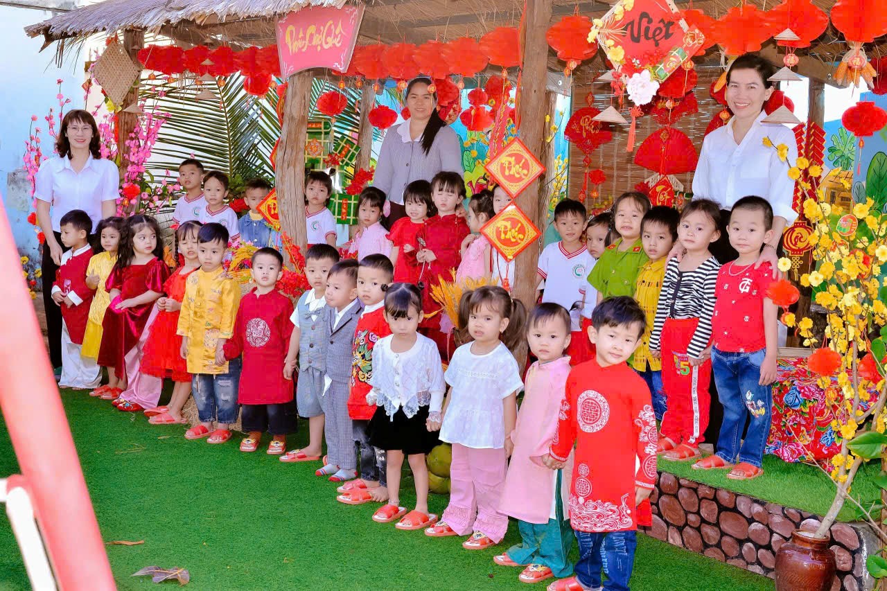 Ngoài ra, các bé còn được tham gia Tổ chức bữa cơm gia đình ngày Tết cho trẻ mầm non tại trường tạo không gian ấm áp, gần gũi, giúp trẻ hiểu về nét văn hóa truyền thống, rèn luyện kỹ năng sống và kỹ năng giao tiếp. Hoạt động này thường bao gồm việc chuẩn bị các món ăn truyền thống, trang trí không gian ngày Tết, và hướng dẫn trẻ các quy tắc ứng xử văn minh trong bữa ăn.